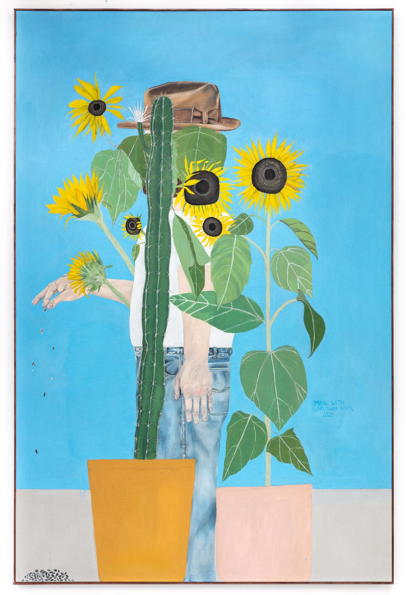 Image 1 of 3 Image 2 of 3 Image 3 of 3 Man With Sunflower Seeds CHF 0.00 2020Oil on linen223,5 × 147,3 cm / 88 × 58 in. Add To Cart Added! 2020Oil on linen223,5 × 147,3 cm / 88 × 58 in.